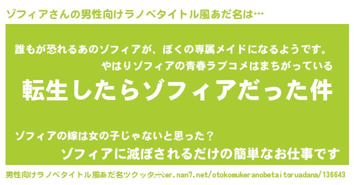 | 意味不明あだ名 | 『もやし科ゾフィア属』『自称ゾフィア』 |