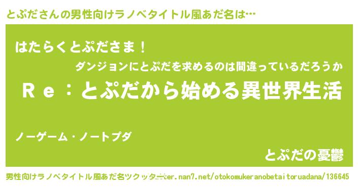 | 女子向けラノベタイトル風あだ名 | 『とぷだストレイドッグス』 |