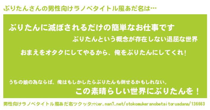 | ヘコむあだ名 | 『ぶりたん(苦笑)』『なまこ酢』 |