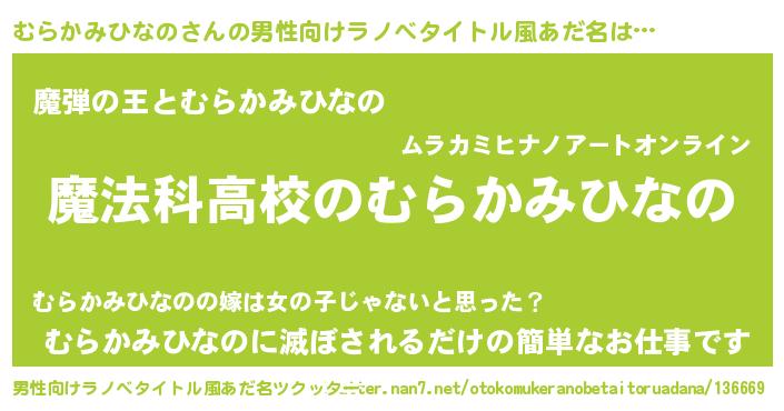 むらかみひなのさんの男性向けラノベタイトル風あだ名をツクッター!