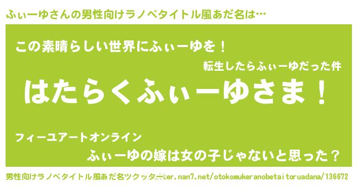 ふぃーゆさんの男性向けラノベタイトル風あだ名をツクッター!