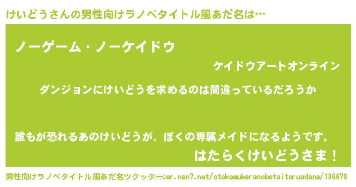 | ヒーロー風カッコイイあだ名 | 『魔戒騎士ケイ』『愛の使者けいどう』 |