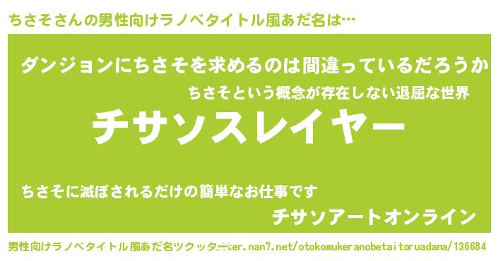 | 胡散臭い通販商品みたいなあだ名 | 『信頼と実績のペンダント…その名も「ちさそ」』 |