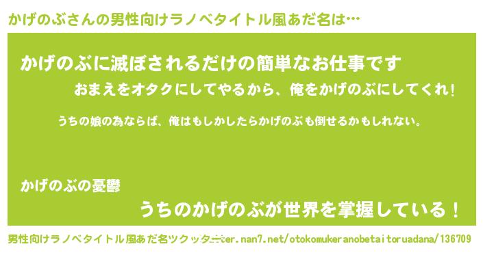 | 胡散臭い通販商品みたいなあだ名 | 『運命の人と巡り会える高級そうな絵画…その名も「かげのぶ」』 |