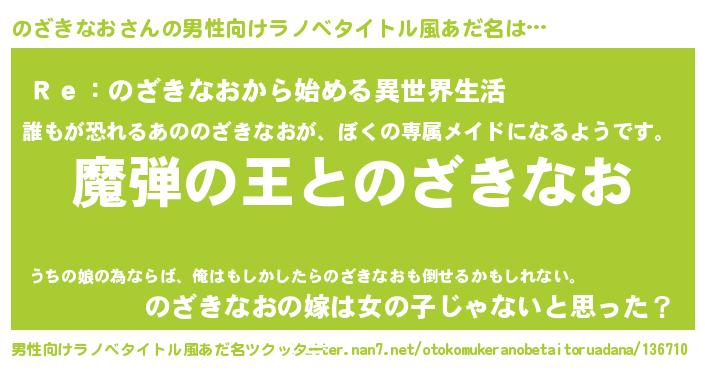 | ヘコむあだ名 | 『のざお』『のざきなお(小並感)』 |