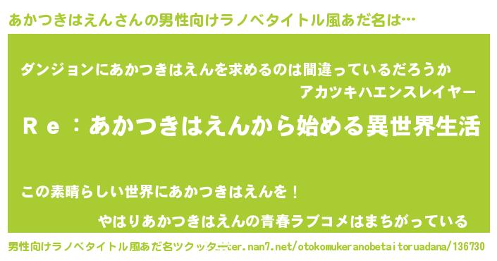 | 意味不明あだ名 | 『自称あかつきはえん』 |