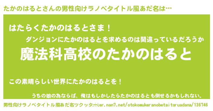 | 女子向けラノベタイトル風あだ名 | 『たかのはるとアンティーク』 |