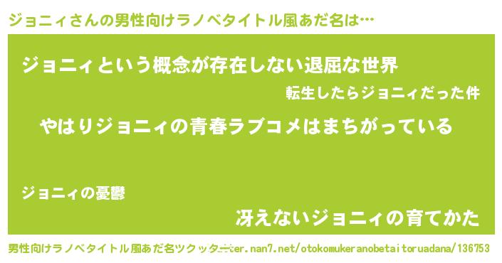 | ヒーロー風カッコイイあだ名 | 『ウルトラジョニィマン』『ネオジョニィ』 |