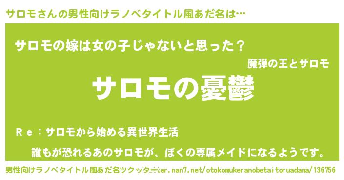 | 女子向けラノベタイトル風あだ名 | 『(仮)サロモのやんごとなき事情』 |