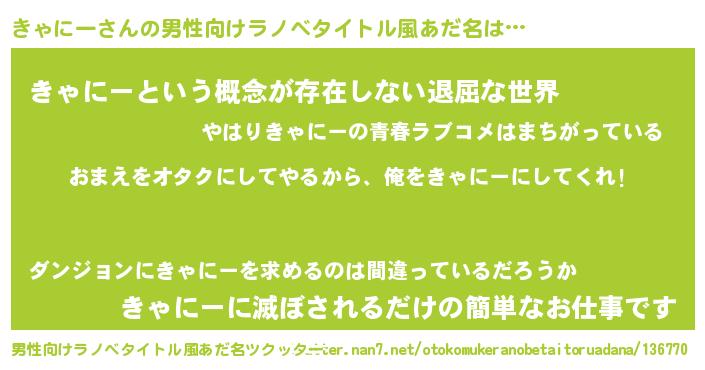 | ヘコむあだ名 | 『きゃにー(笑)』『牛乳』『きゃっ子』 |