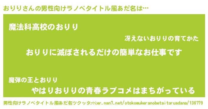 | 胡散臭い通販商品みたいなあだ名 | 『芸能人もオススメする高麗人参…その名も「おりり」』 |