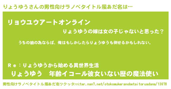 | 胡散臭い通販商品みたいなあだ名 | 『運命の人と巡り会える高級そうな絵画…その名も「りょうゆう」』 |