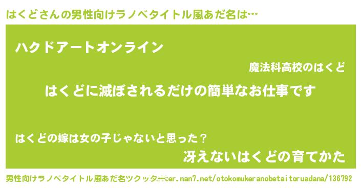 | 胡散臭い通販商品みたいなあだ名 | 『億万長者になれる霊験あらたかなお札…その名も「はくど」』 |