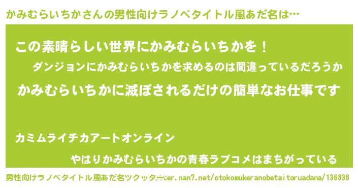| 意味不明あだ名 | 『住所不定無職かみむらいちか(41歳)』 |