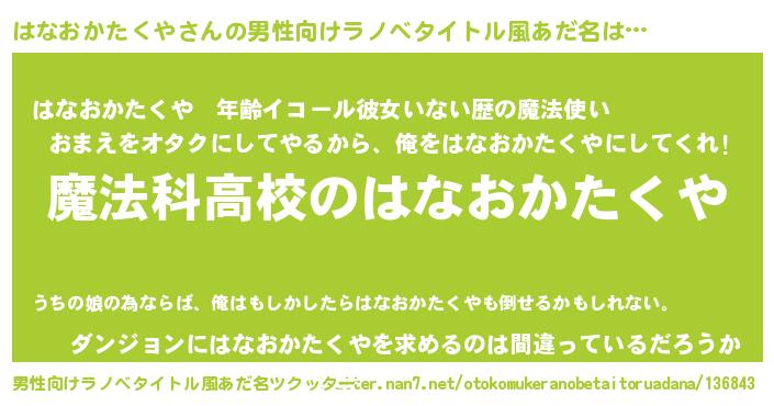 | 女子向けラノベタイトル風あだ名 | 『はなおかたくやなんてお断りですっ。』 |
