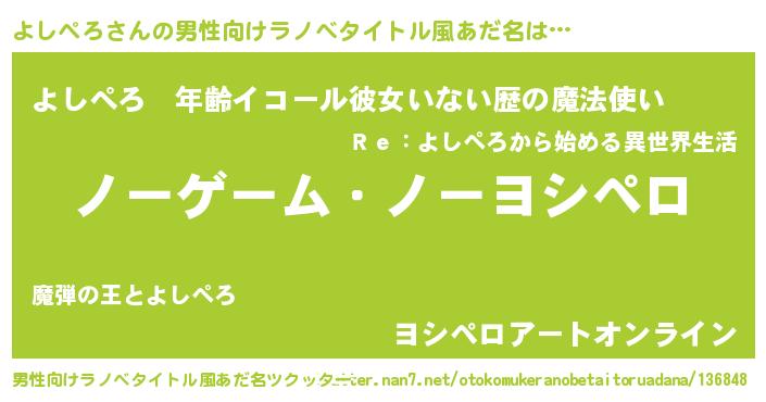 | 女子向けラノベタイトル風あだ名 | 『よしぺろ恋絵巻』 |