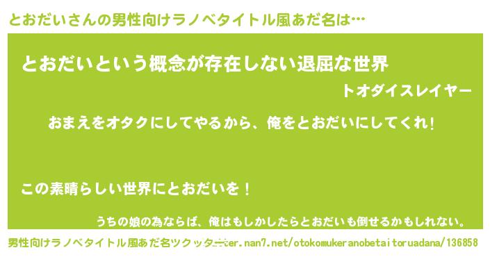 | ヘコむあだ名 | 『とおだい(笑)』『豆乳』『とおっ子』 |