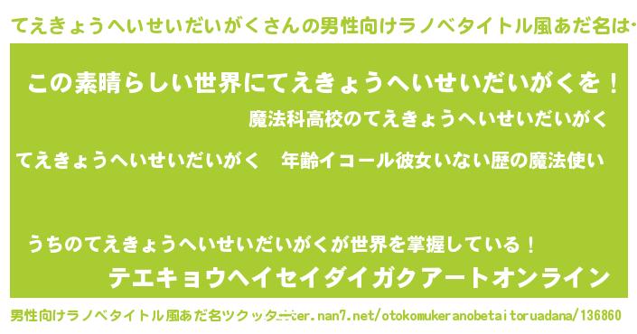 | 肩書あだ名 | 『てえきょうへいせいだいがく大尉』 |