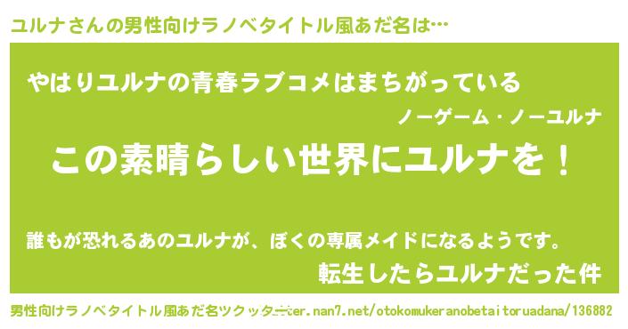 | 女子向けラノベタイトル風あだ名 | 『悪役ユルナに転生したようですが、知った事ではありません』 |