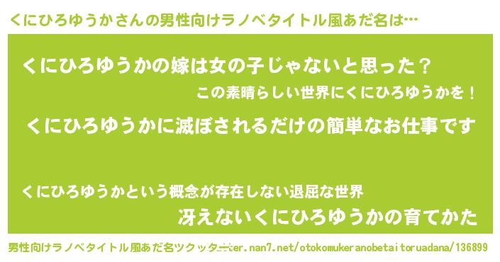 | ヘコむあだ名 | 『くにお』『くにひろゆうか(笑)』 |