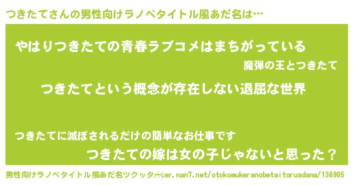 | 胡散臭い通販商品みたいなあだ名 | 『来世でも幸せになれる健康食品…その名も「つきたて」』 |