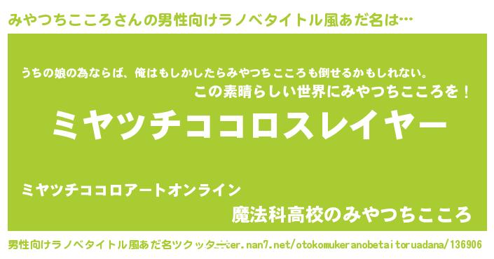 | 肩書あだ名 | 『みやつちこころ少佐』 |