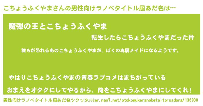 | 意味不明あだ名 | 『永久保存こちょうふくやま』 |