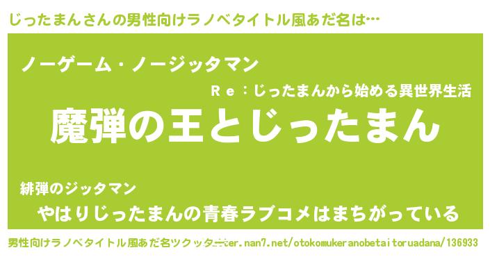 | 女子向けラノベタイトル風あだ名 | 『乙女ゲームの破滅フラグしかない悪役じったまんに転生してしまった…』 |