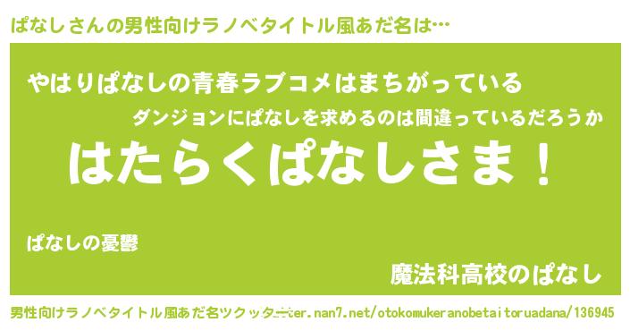 ぱなしさんの男性向けラノベタイトル風あだ名をツクッター!