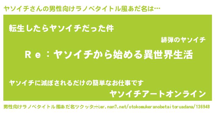 | 意味不明あだ名 | 『自称ヤソイチ』『もやし科ヤソイチ属』 |