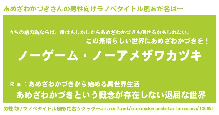 | 女子向けラノベタイトル風あだ名 | 『あめざわかづき恋絵巻』 |