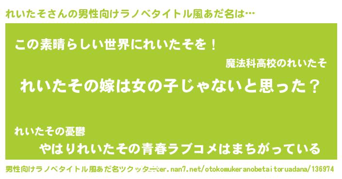 | 女子向けラノベタイトル風あだ名 | 『れいたそ様がみてる』 |