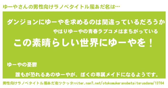 | 意味不明あだ名 | 『住所不定無職ゆーや(11歳)』 |