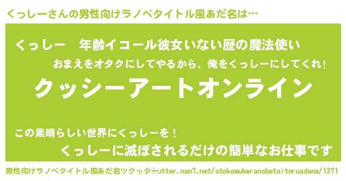 | 女子向けラノベタイトル風あだ名 | 『誰かこのくっしーを説明してください! ~契約から始まるウェディング~』 |