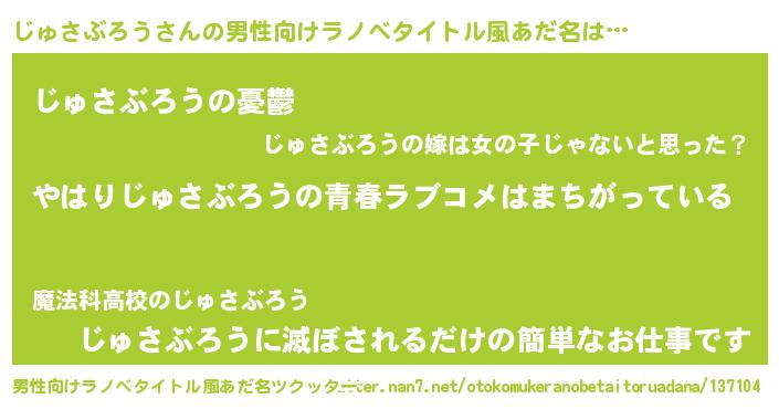 | 意味不明あだ名 | 『じゅさぶろうフォーエバー』 |