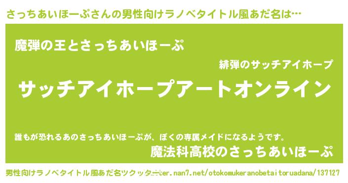 | ヒーロー風カッコイイあだ名 | 『スーパーサッチアイホープ』 |