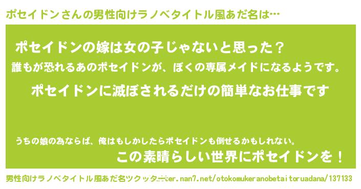| ヘコむあだ名 | 『ポセ太郎』『ポセイドン(爆)』 |
