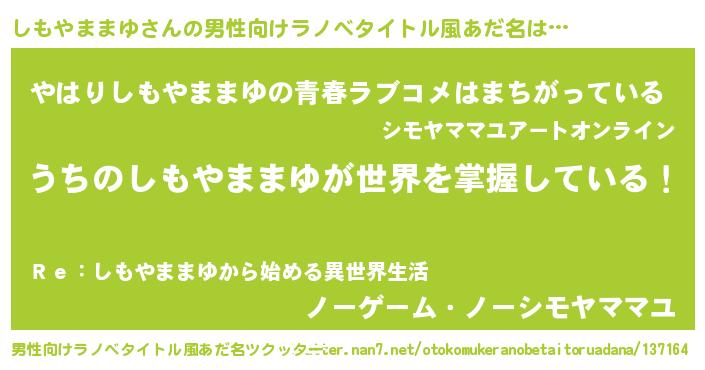 | ヒーロー風カッコイイあだ名 | 『ウルトラしもやままゆマン』 |