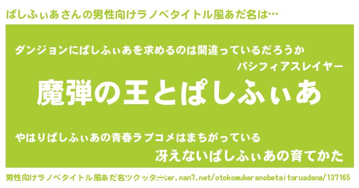 | 女子向けラノベタイトル風あだ名 | 『ぱしふぃあが死なない童話 林檎のぱしふぃあの診療簿』 |