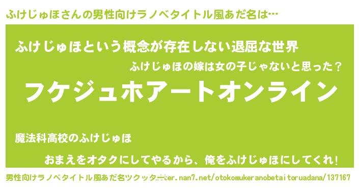 | 胡散臭い通販商品みたいなあだ名 | 『億万長者になれる霊験あらたかなお札…その名も「ふけじゅほ」』 |