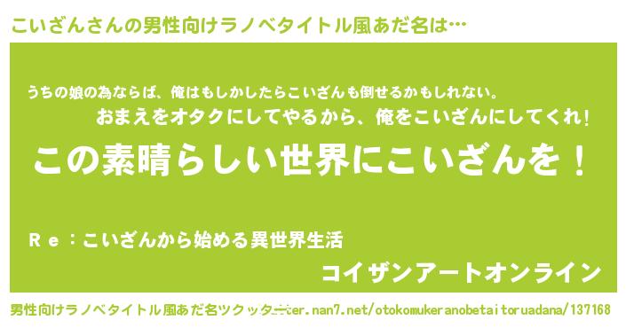 | ヒーロー風カッコイイあだ名 | 『仮面コイダー』『ウルトラこいざんマン』 |