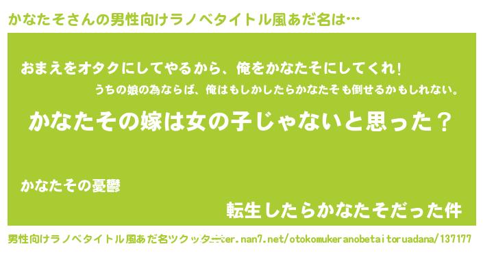 | 女子向けラノベタイトル風あだ名 | 『かなたそ様がみてる』 |