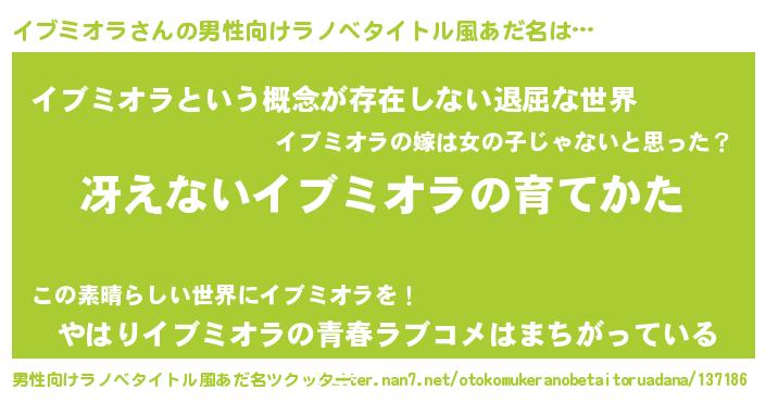 | ヘコむあだ名 | 『イブミオラ(笑)』『豆乳』 |