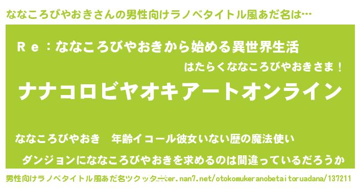 | 胡散臭い通販商品みたいなあだ名 | 『モテモテ間違いなし水晶球…その名も「ななころびやおき」』 |
