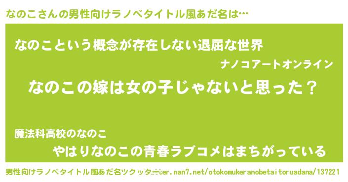 | 意味不明あだ名 | 『とにかく怪しいなのこ』『自称なのこ』 |