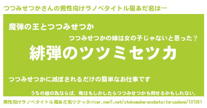 | 意味不明あだ名 | 『住所不定無職つつみせつか(7歳)』 |