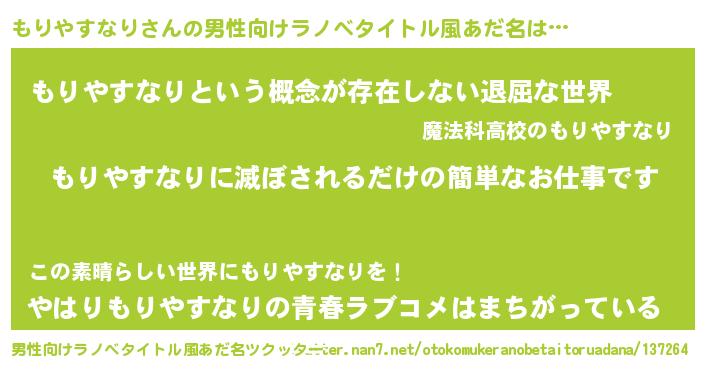 | 意味不明あだ名 | 『永久保存もりやすなり』 |