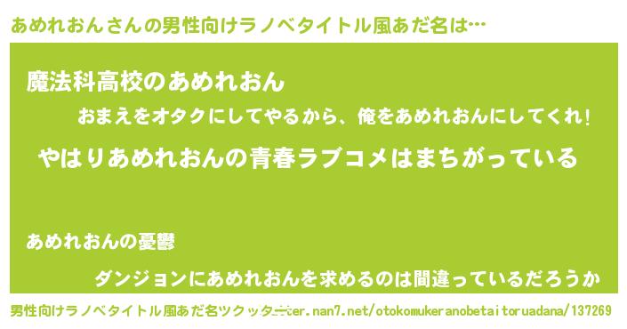 | 女子向けラノベタイトル風あだ名 | 『あめれおん伯爵の花嫁』 |