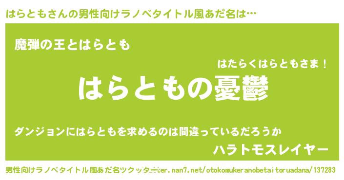 | 胡散臭い通販商品みたいなあだ名 | 『モテモテ間違いなし霊験あらたかなお札…その名も「はらとも」』 |