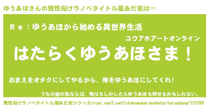 | ファンタジー風あだ名 | 『ゼユウトゥ』『エターナルユウアホー』 |